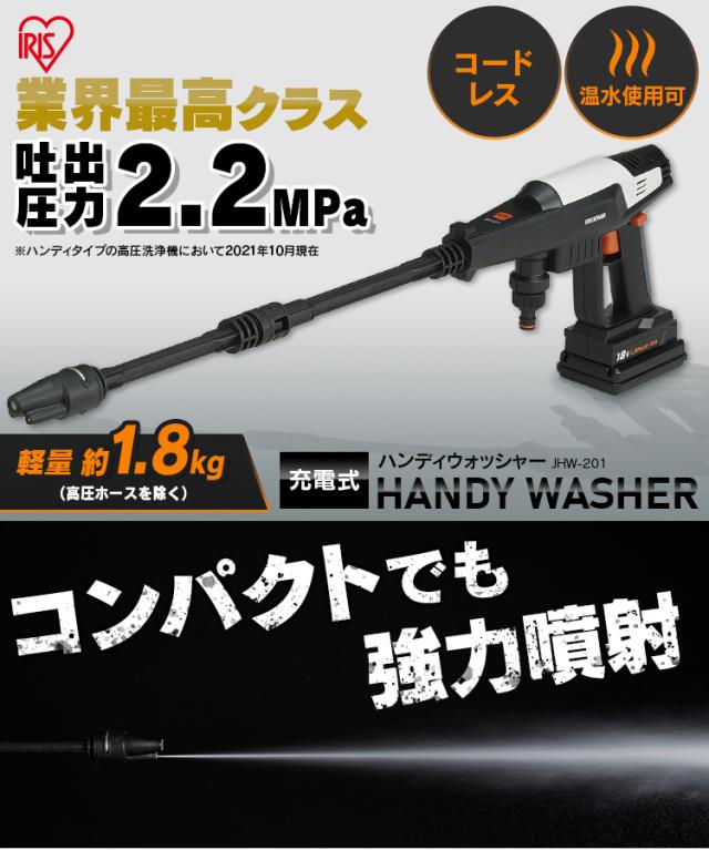 高圧洗浄機 アイリスオーヤマ 車掃除 ハンディウォッシャー 充電式 JHW-201 大掃除 掃除用品 外壁掃除 洗車 水圧 高圧洗浄器 高圧 洗浄 そうじ 掃除 ハンディーウォッシャー 高圧洗浄 洗浄 送料無料
