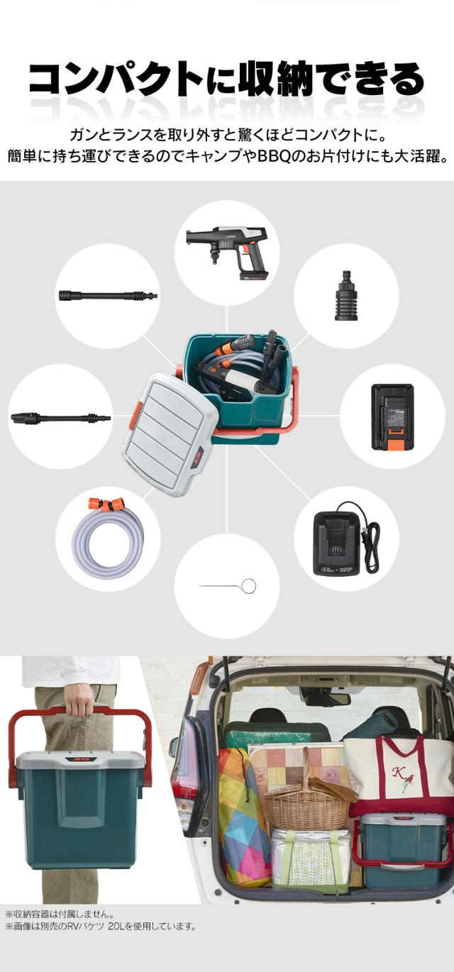 マンションなどのベランダはもちろん、外壁掃除やコケ落とし、車・自転車・バイクの洗車、キャンプ用品の清掃やBBQの片付けにも大活躍。