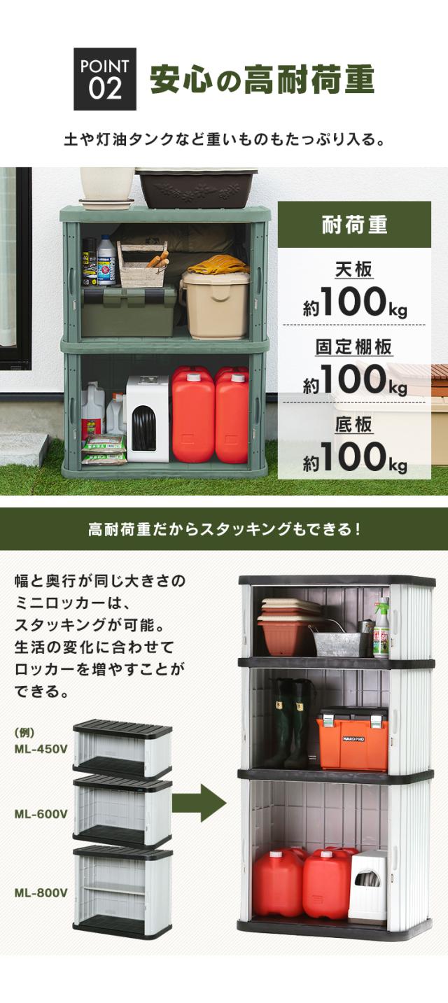 ベランダ等の狭いスペースでの使用に最適なミニロッカーです。灯油ポリタンクが3本収納できる他、園芸用品、レジャー・スポーツ用品の収納に便利です。扉は観音開きのシャッターで、しなやかでスムーズな開閉を実現。盗難防止に市販の南京錠が使える金具付です。★お客様組立て