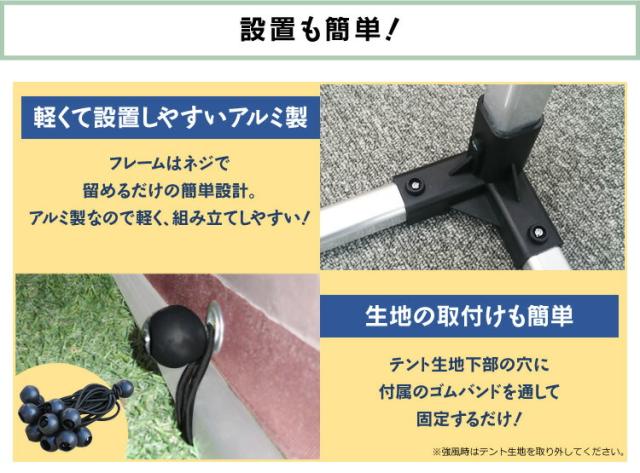 ビス、テント生地、ゴムバンド、ストレートパイプ、支柱、アーチ、固定用クイ