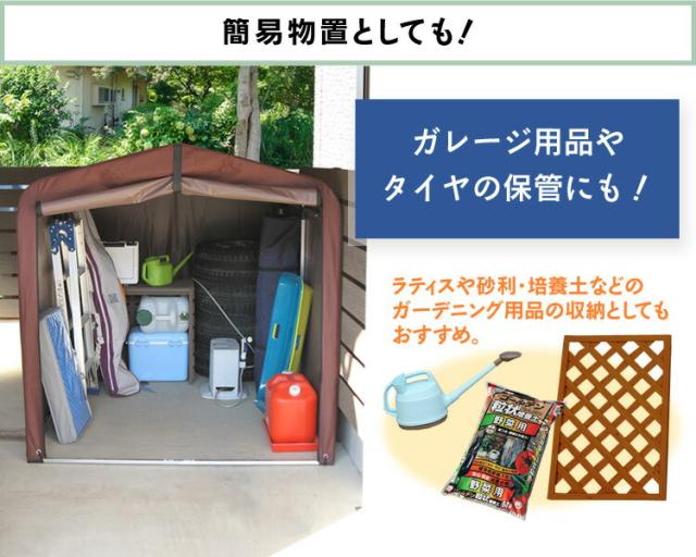 簡易物置としても使え、ガレージ用品やタイヤの保管にも最適。