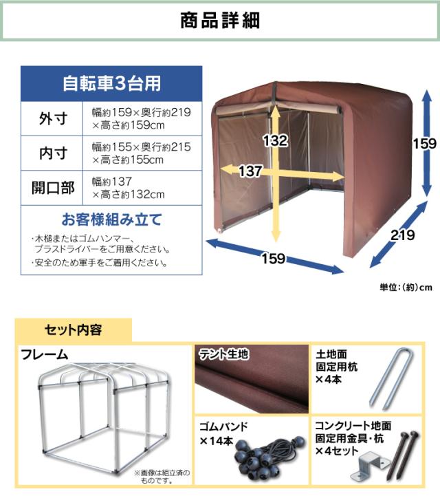 サイクルハウス おしゃれ 3台用 ACI-3SBR サイクルガレージ 3台 自転車置き場 自転車ガレージ サイクルポート バイク ガレージ 駐輪所 自転車 家庭用 バイク 保管 ガレージ 雨よけ 耐久性 防水 簡単 便利 アウトドア 庭 ブラウン 送料無料