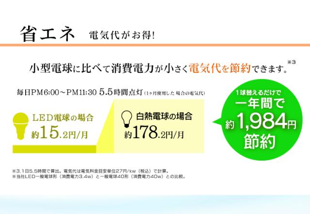 ・ON/OFFに強い・・・LEDは、頻繁なスイッチの入/切による劣化がなく寿命が短くなることはありません。