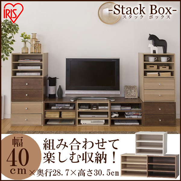 スタックボックス 棚付き 収納 収納ボックス 家具 棚 重ねる 木目調 木製 おしゃれ STB-400T アイリスオーヤマ 送料無料