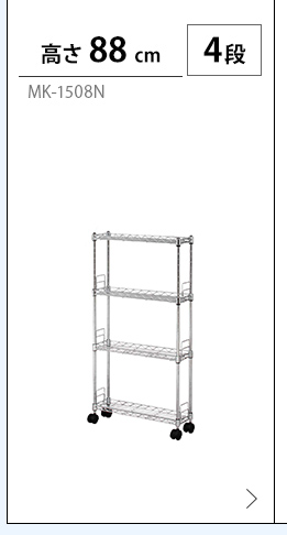 冷蔵庫とシンクの間、コンロと壁の間などにできる隙間を上手に活用することのできるメタルスリムです。
