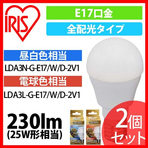 2個セット LED電球 E17 全配光タイプ 調光器対応 25W形相当 昼白色・電球色 LDA3N-G-E17/W/D-2V1 アイリスオーヤマ