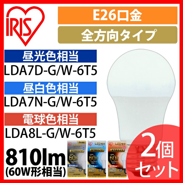 LED電球 E26 全方向タイプ 60W形相当 LDA7N-G/W-6T52P 2個セット アイリスオーヤマ