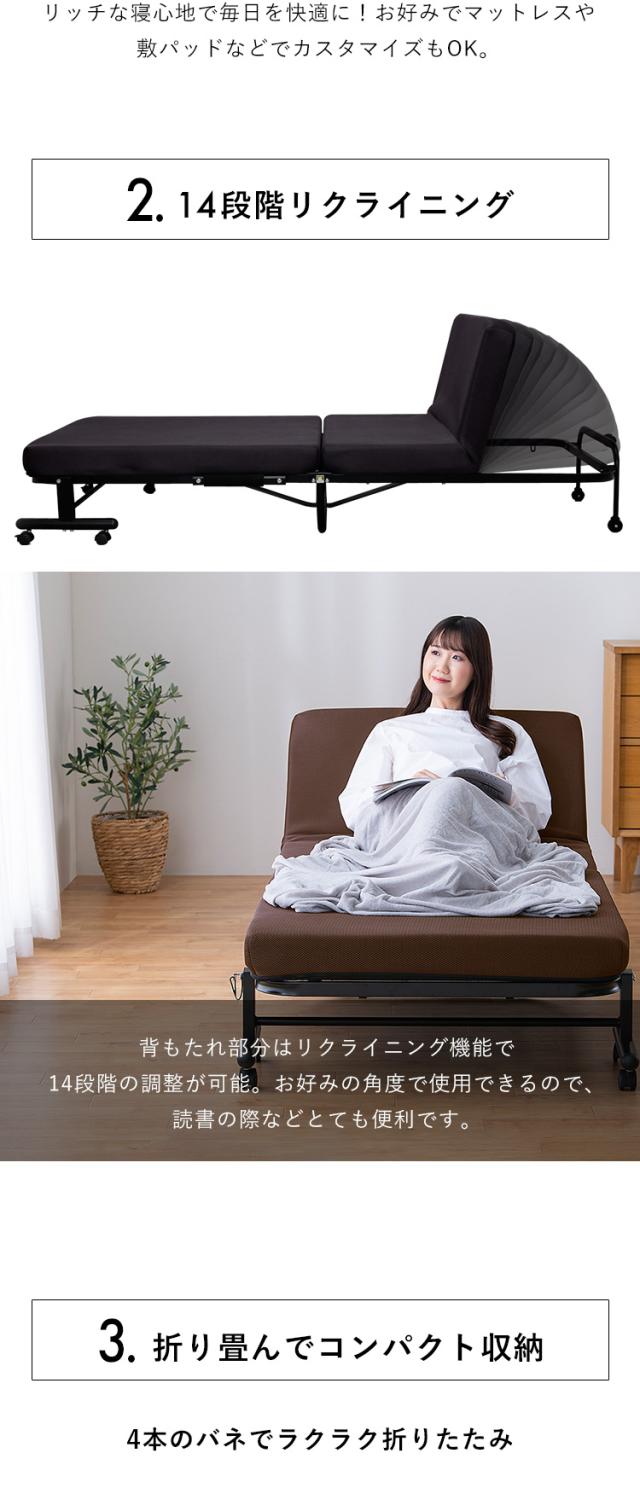 高反発 折りたたみベッド シングル 14段階リクライニング 高反発ウレタン アイリスオーヤマ OTBSS-KR 送料無料