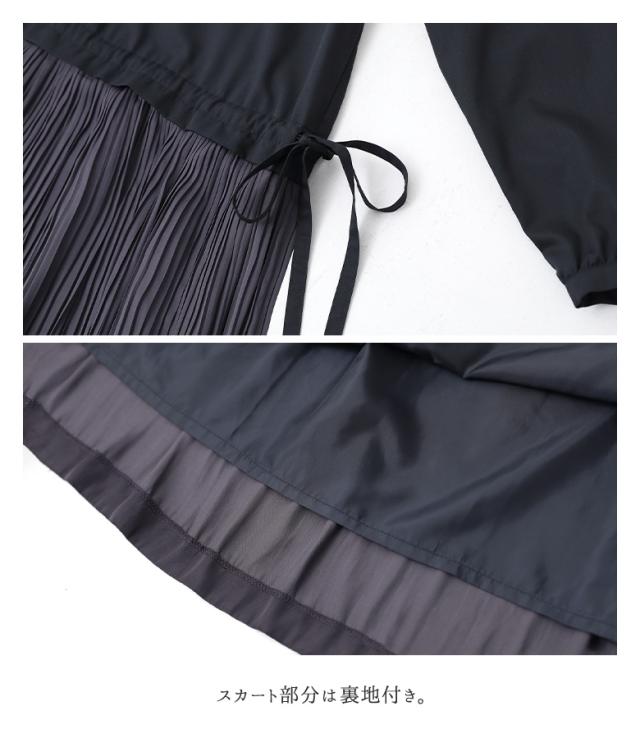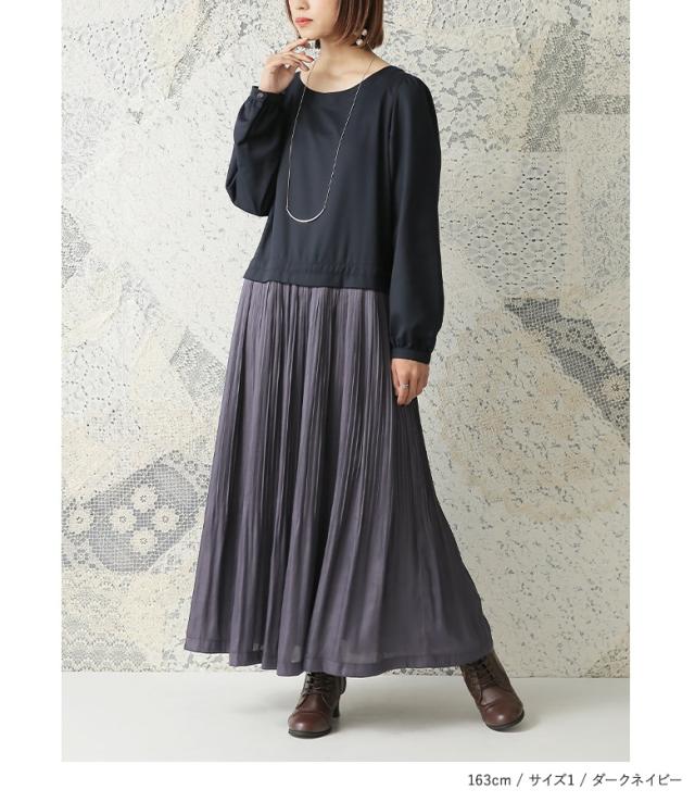 【送料無料】『サテンプリーツワンピース』 【メール便不可】【20】[ ロング ワンピース レディース 長袖 結婚式 フォーマル パーティー セットアップ サテン プリーツ 配色 異素材 切り替え wfs0015]
