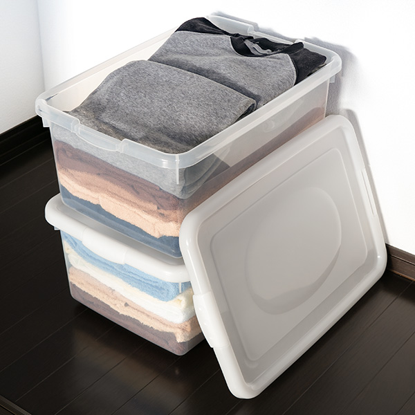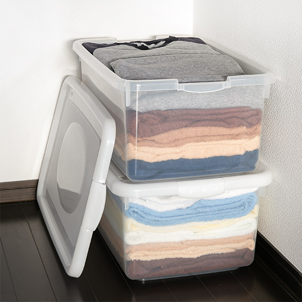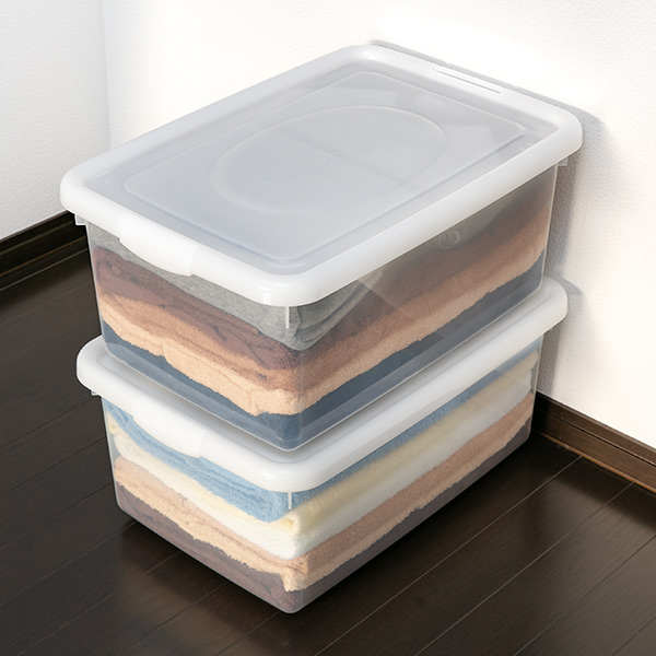 大容量サイズでありながら、高さ約23cmのためベッド下収納としてぴったりです。厚手の服なら約8〜9枚、バスタオルなら約5〜6枚収納可能です。