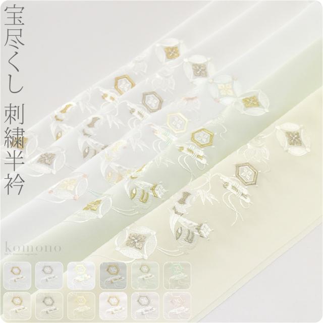 半衿 刺繍 半襟 袷用 日本製 和彩 刺繍カラー半衿 宝尽くし 留袖 振袖 訪問着 色無地用 ポリエステル 礼装 おしゃれ 大人 レディース 女性 10022106