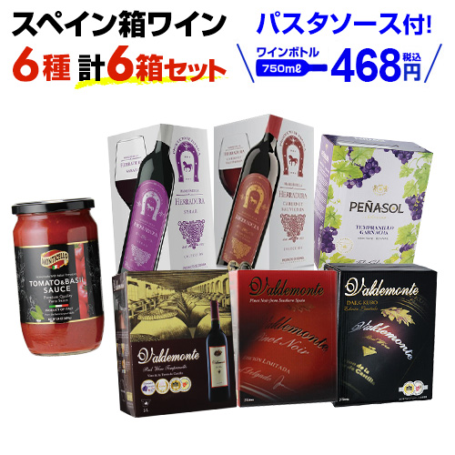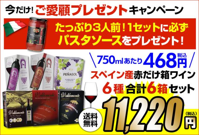 期間限定パスタソース付き ボトル換算468円(税込) 送料無料 赤だけ箱ワイン 6種6箱セット 長S