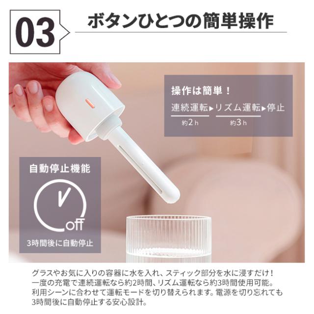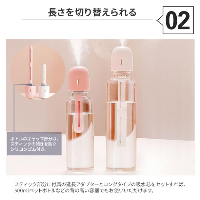加湿器 ハンディ スティック ペットボトル加湿器 グラス コップ 卓上加湿器 超音波式加湿器 USB 充電式 ポータブル加湿器 オフィス ベッドサイド 車用 車載 車内 車載加湿器 コードレス 自動停止 タイマー コンパクト おしゃれ 小型 静音 静か BP2