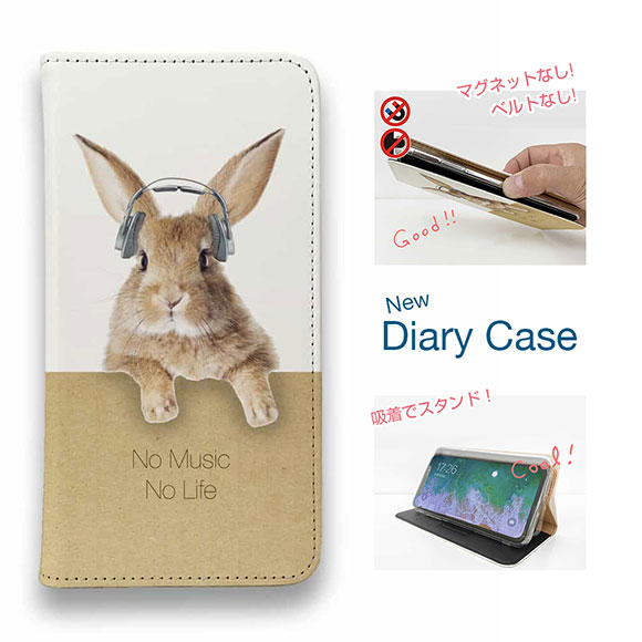 スマホケース 手帳型 ベルトなし マグネットなし iPhone17 Pro Max iPhone Air iPhone16e Pro Max 16 Plus 15 Pro Max 14 Plus Xperia 10 VII Galaxy AQUOS Pixel10 Pro XL 兎 雑貨 ウサギだってNo Music No Life