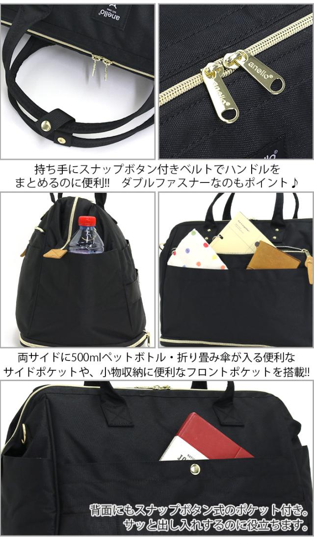 ボストン anello アネロ 正規品 ボストンバッグ CROSS BOTTLE クロスボトル 口金 2way ショルダーバッグ カバン 斜め掛け レディース 可愛い 人気 マザーズバッグ B4 A4 キャリーオン 黒 中学生 高校生 大学生 学生 30L 撥水 ATC3333R