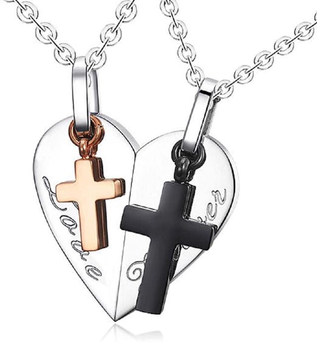 ペアネックレス 十字架 アレルギーフリー 刻印 ステンレス ペア 幸せのペアネックレス ステンレスネックレス ネックレス 人気ペアネックレス