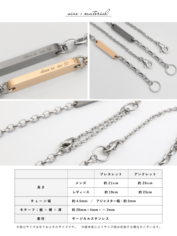 ペアブレスレット ペアアンクレット ブレスレット アンクレット つけっぱなし ステンレス サージカルステンレス 医療用ステンレス 金属アレルギー アレルギーフリー 316L close to me 刻印 名入れ テディベア 贈り物 ギフト