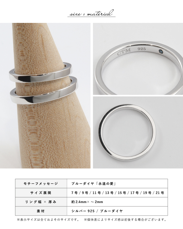 ペアリング リング 指輪 シルバー925 甲丸 シンプル ブルーダイヤ ブルーダイア 刻印 名入れ close to me テディベア ペア メンズ レディース ギフト 結婚指輪 マリッジリング カップル