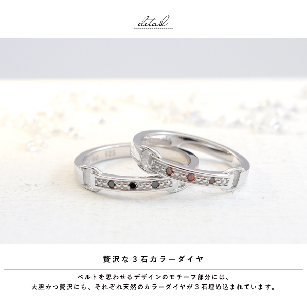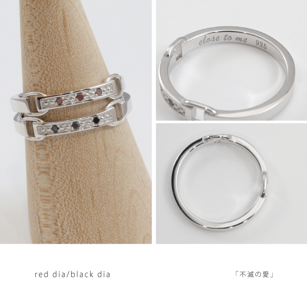 ペアリング リング 指輪 シルバー925 レッドダイヤ ブラックダイヤ 3石 ダイヤモンド ダイアモンド 刻印 名入れ close to me テディベア ペア メンズ レディース ギフト 結婚指輪 マリッジリング カップル