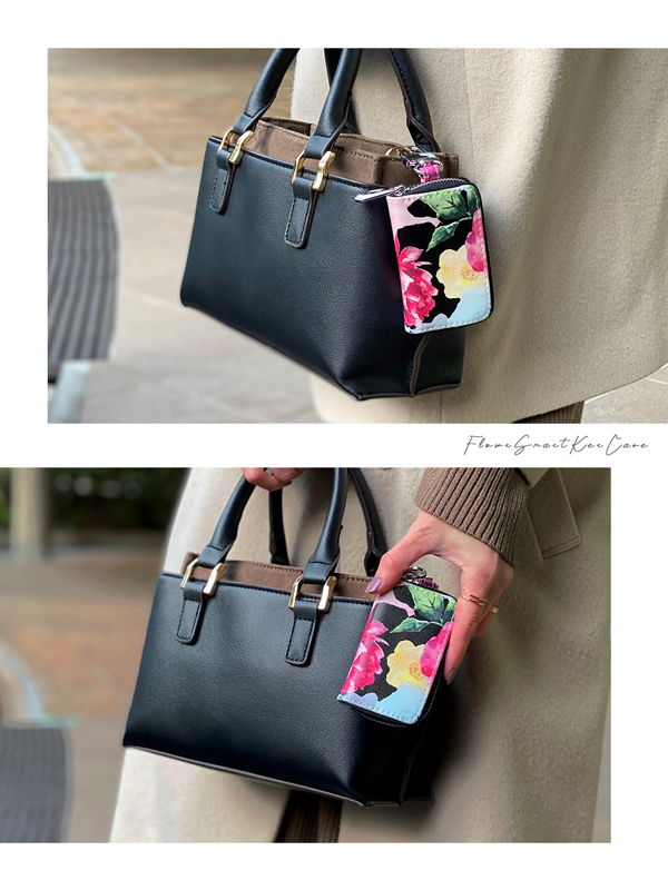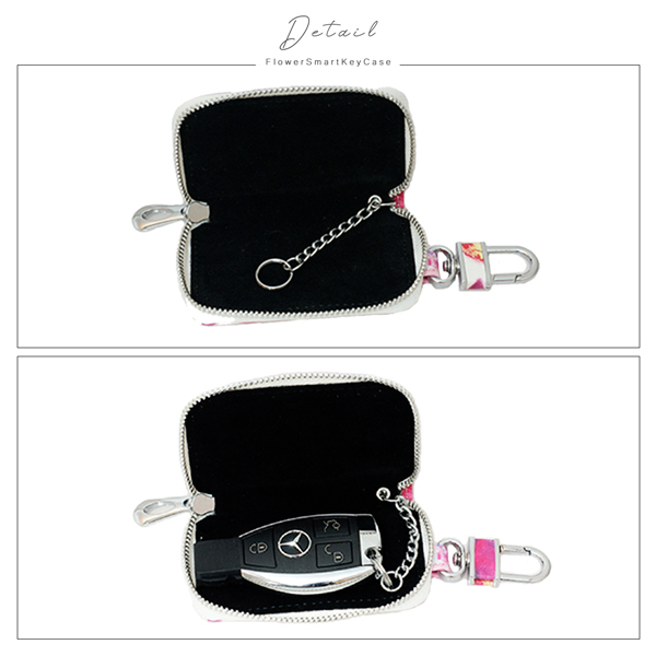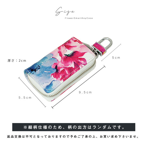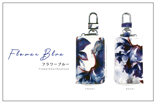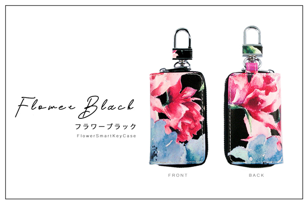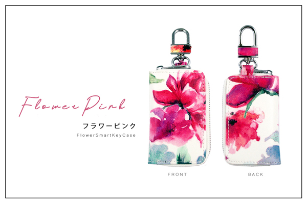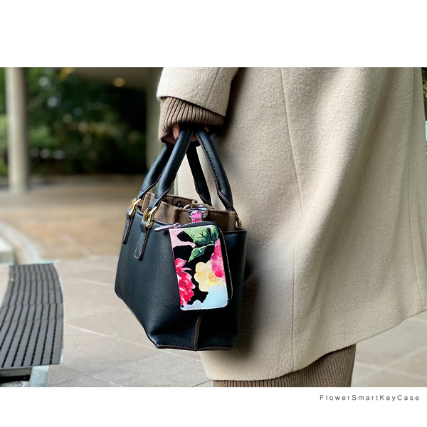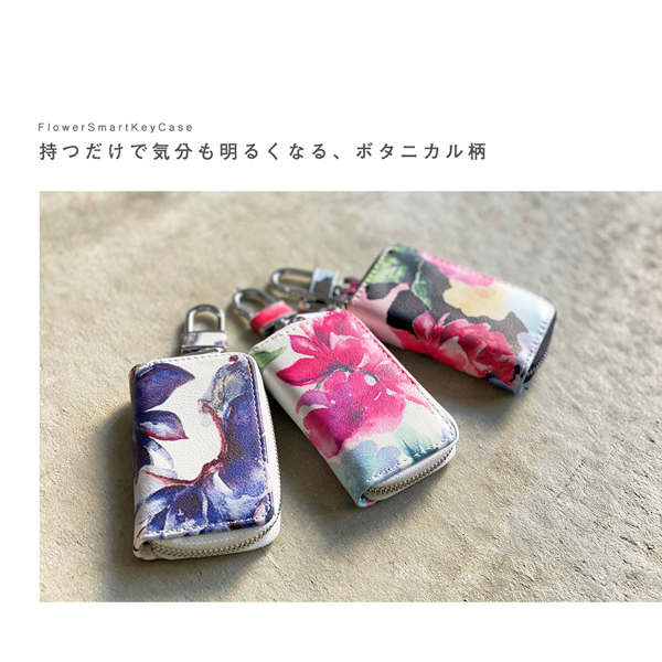 ぱっと華やかなボタニカル花柄のスマートキーケース。