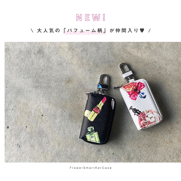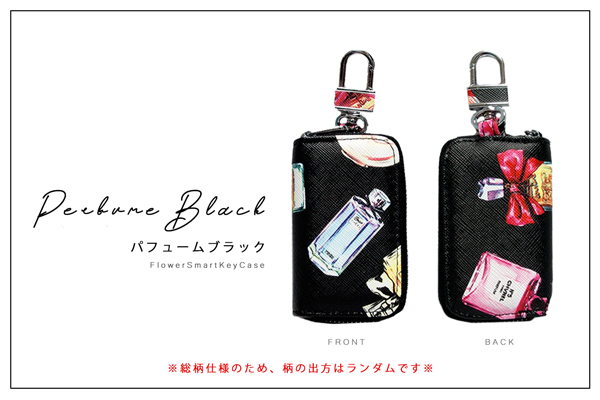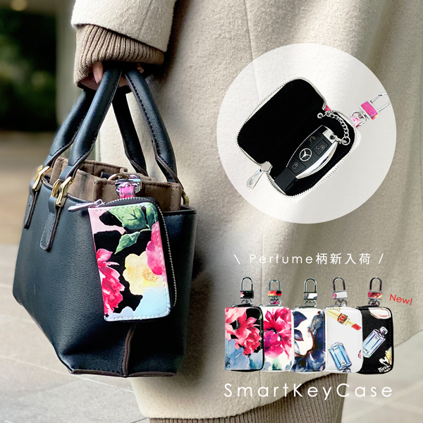 スマートキーケース 花柄 香水柄 キーレス ケース ミニ キーケース フック付き 車 鍵 キーリング コンパクト フラワー パフューム 小さめ お洒落 トヨタ ホンダ かわいい レディース ボタニカル 母の日 プレゼント ギフト