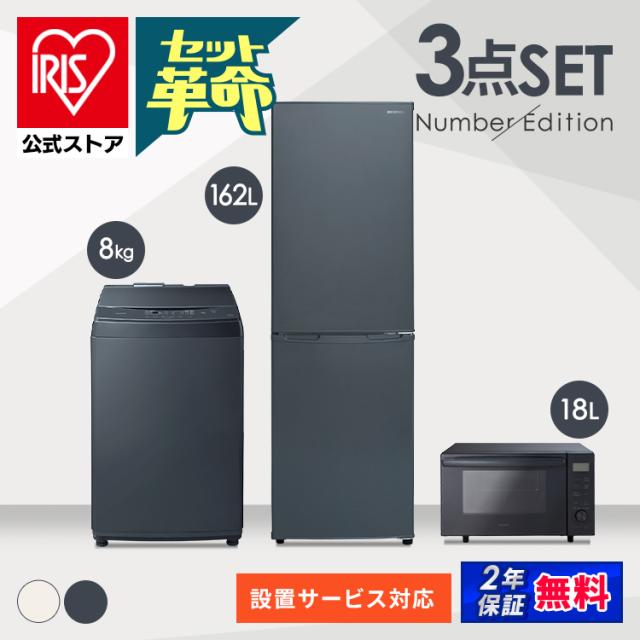 家電セット 3点 家電3点セット 冷蔵庫162L+洗濯機8kg+オーブンレンジ18L 家電セット 新生活セット 家電 セット 冷蔵庫 洗濯機 ホワイトレーベル 新生活 一人暮らし アイリスオーヤマ 送料無料 安心延長保証対象