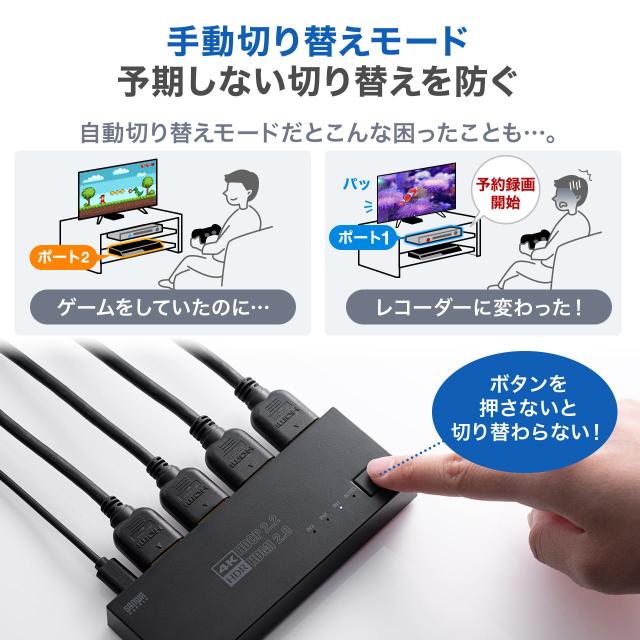 ■切替方式:本体切替ボタン ※電源ON機器への自動切替機能あり