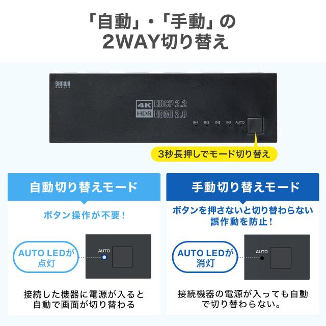■切替方式:本体切替ボタン ※電源ON機器への自動切替機能あり