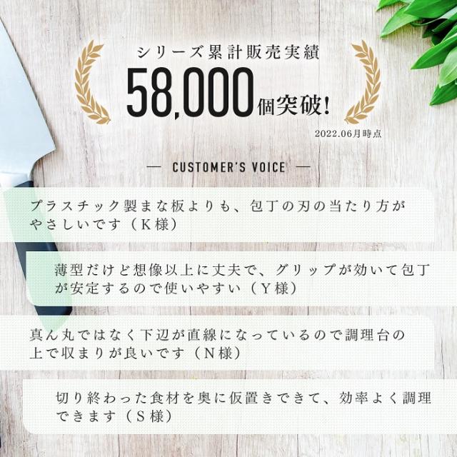 刃あたりが柔らかく食材がすべりにくい、弾力性のある耐熱エラストマーまな板。