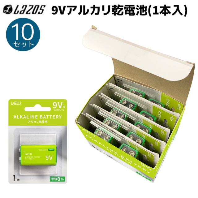 9V アルカリ乾電池 1本 10個セット 電池 アルカリ 10個 乾電池 バッテリー LA-9VX1 Lazos LAZOS 防犯用品 でんち