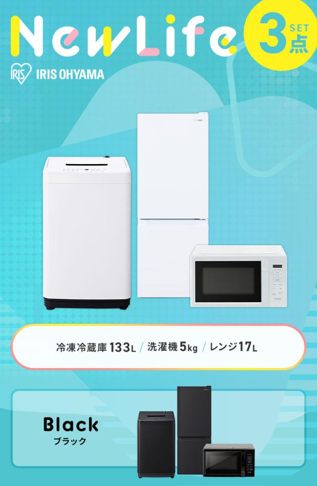 家電セット 一人暮らし 3点セット 冷蔵庫 洗濯機 電子レンジ セット 冷凍冷蔵庫 幅スリム 2ドア 急冷 133L 全自動洗濯機 5kg 縦型 コンパクト 単機能 レンジ 本体 黒 白 ひとり暮らし 家電3点セット アイリスオーヤマ 新生活 * 2026年