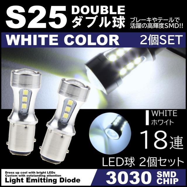 爆光LED 12V 18SMD 3030SMD ホワイト S25 ダブル キャンセラー内蔵 テールランプ ブレーキランプ ストップランプ 2個セット
