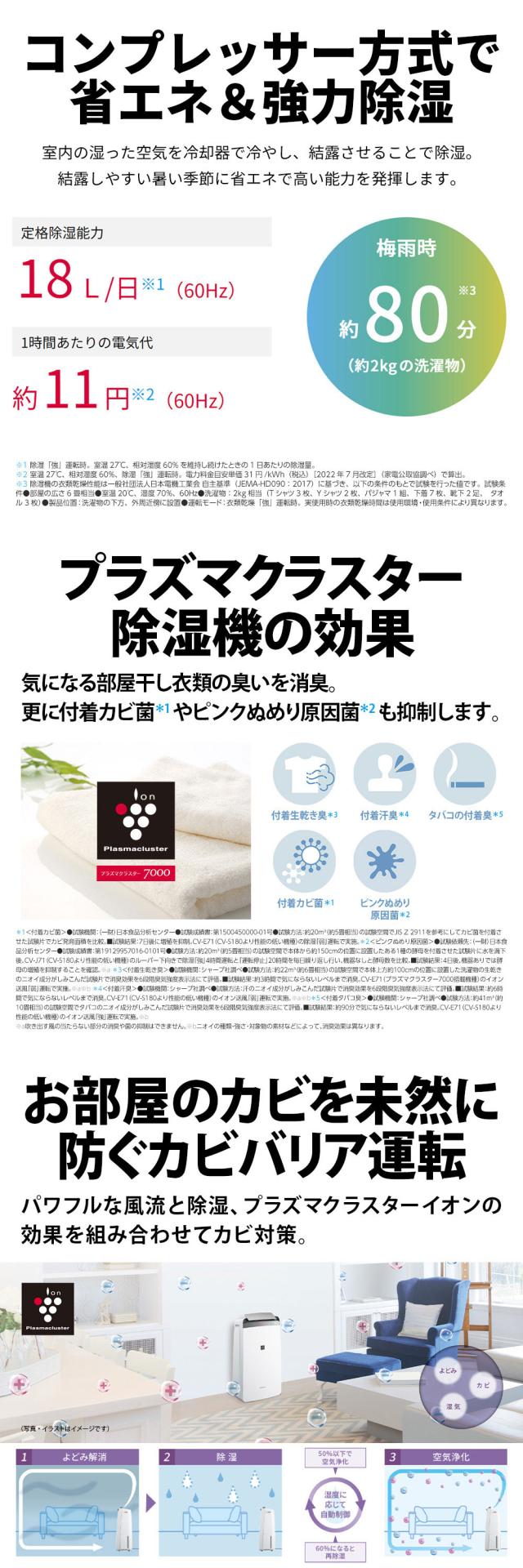 SHARP CV-S180-W ホワイト [コンプレッサー式衣類乾燥除湿機 (木造20畳/コンクリ40畳まで)]