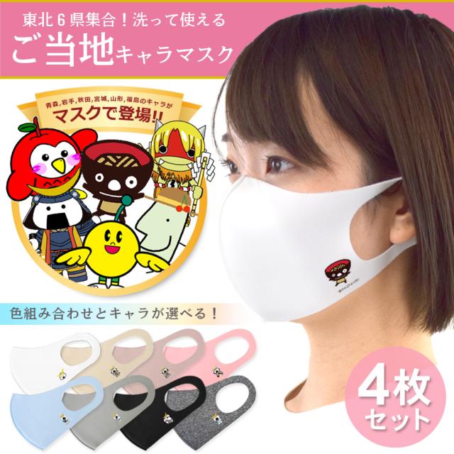 マスク 洗えるマスク 4枚セット ご当地 コラボ 東北 ご当地キャラ ゆるキャラ 大人用 立体マスク 東北6県 3Dマスク 青森 岩手田 宮城 山形 福島 もっぷるちゃん そばっち んだッチ むすび丸 きてけろくん キビタン 送料無料 (ep0012)