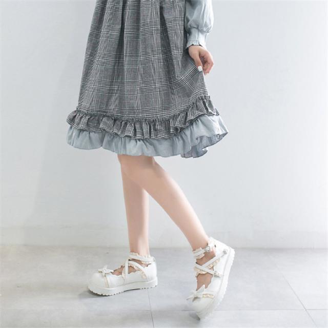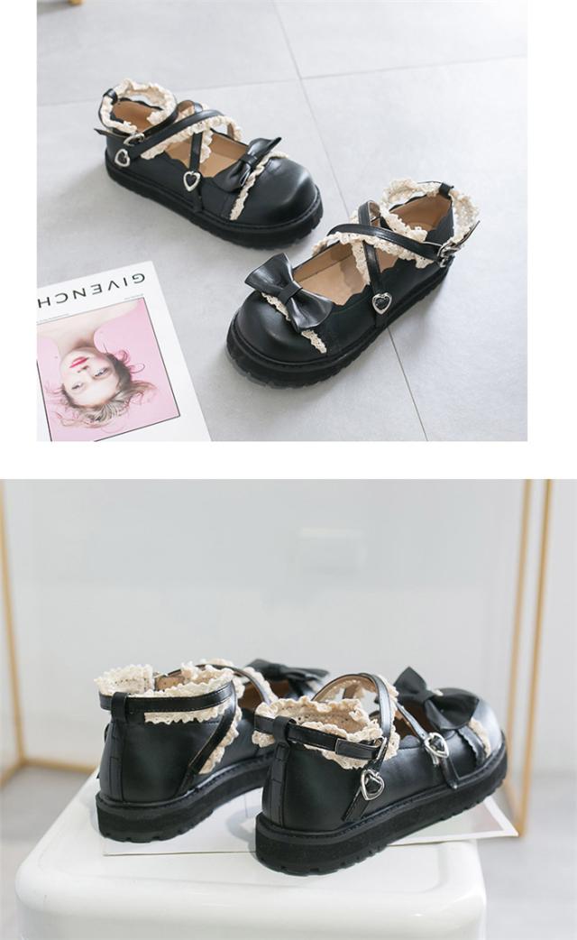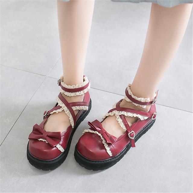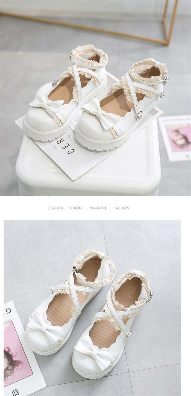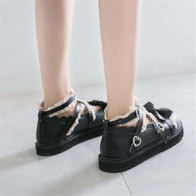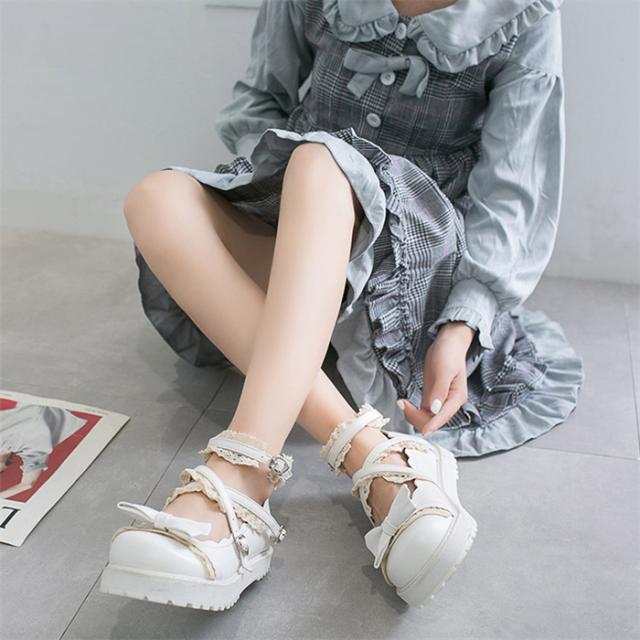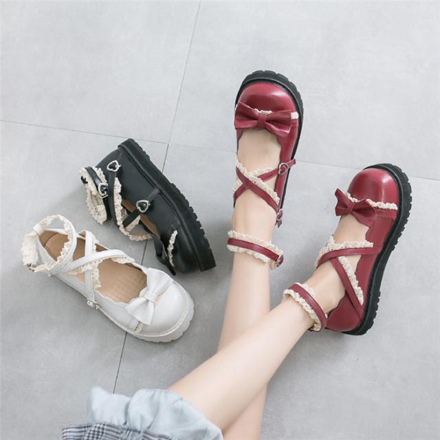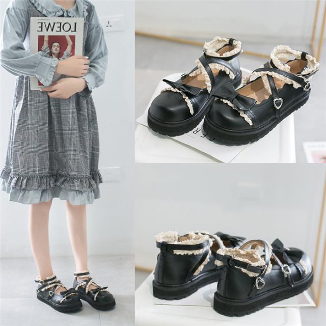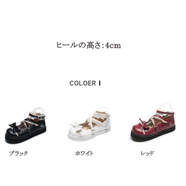 クロスストラップ 厚底パンプス 靴 レディース プラットフォーム ロリータ リボン レース パール 痛くない 脱げない お嬢様 ガーリー 可愛い 歩きやすい 小さいサイズ ブラック