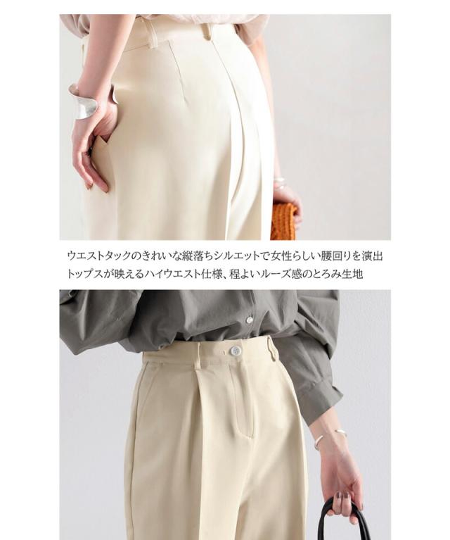 秋新作 クラシカルエルフ レディース 体型カバー ウエストゴム UV ボトムス パンツ ワイドパンツ センタープレス オフィス 大きいサイズ clo18002