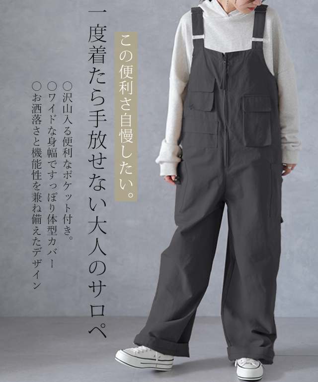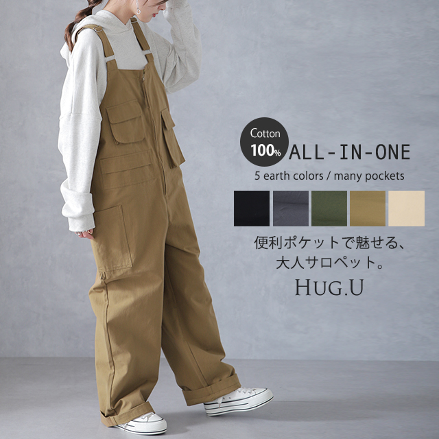 サロペ ワイドパンツ ワイド ロンパース コンビネゾン ブラック 黒色 カーキ 緑 緑色 オリーブ グリーン グレー アースグレー 灰 灰色 チャコール アースカラー クッキー ベージュ 茶 茶色 ブラウン キャメル ビッグシルエット ゆったり ビック ビッグ オーバーシルエット ビックシルエット ルーズ らくちん ラクチン ストレスフリー アウトドア キャンプ 散歩 お散歩 高身長 トールサイズ メンズライク メンズ アクティブ コットン100 綿100 コットン ポケット ポケット付き コットン パンツ ズボン ずぼん 長ズボン 長ずぼん ロールアップ ウエストフリー ストレスフリー 10分丈 十分丈 女性 調節可能 肩紐 ストリート ロールアップ レディースファッション ラクチン 楽 らくちん 楽ちん 動きやすい ロング 体型カバー キャンプ プラスサイズ 着痩せ 脚長 脚長効果 ゆったり ゆったりサイズ ゆる すっきり カジュアル 着回し 大人 大人カジュアル オトナ 女性 綺麗 きれい キレイ きれいめ キレイめ 高見え 上質 上品 オールシーズン フリーサイズ フリー S M L LL 2L XL 3L XXL LLL 20代 30代 40代 50代 おしゃれ 母の日 春夏 春 夏 秋冬 お洒落 オシャレ かわいい 可愛い カワイイ アメリカンカジュアル アメカジ ユニセックス 男女兼用 HUG.U HUGU ハグユー はぐゆー