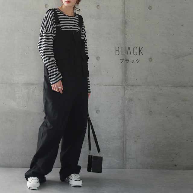 「たっぷり便利ポケット」メンズライクなこなれ感。 オールインワン レディース サロペット 大きいサイズ 一部12月下旬入荷 サロペ つなぎ オーバーオール パンツ ボトムス 無地 綿 無地 シンプル 黒 冬 秋 秋新作