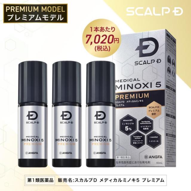 第1類医薬品 発毛剤 ミノキシジル スカルプD メディカル ミノキ 5 プレミアム 3本 (問診8の「図※1」は商品画像5枚目)