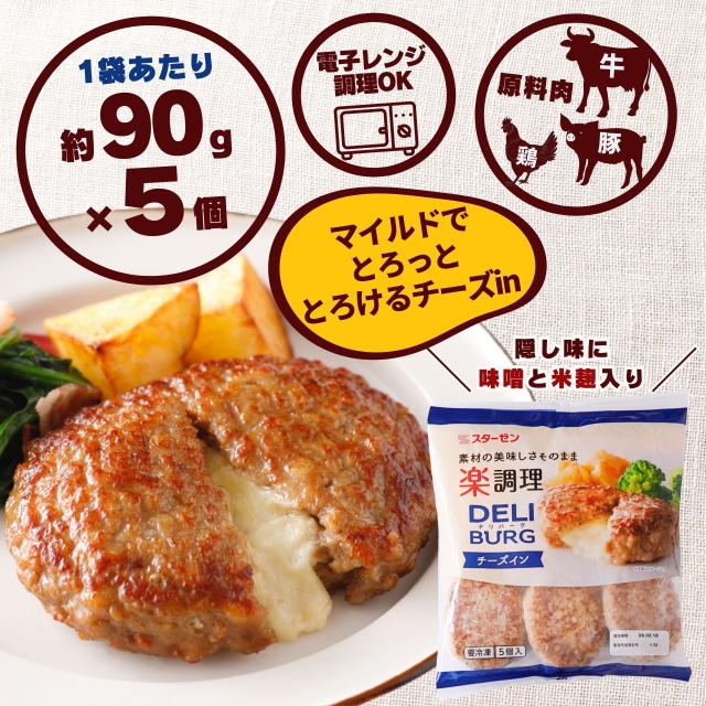 チーズインハンバーグ 20個 計1.8kg 5個入×4袋 牛肉 豚肉 鶏肉 送料無料 国内製造 業務用 お徳用 冷凍 冷凍食品 レンジ ポイント消化 ハンバーグ お買い得 レンジ調理 お弁当 おかず おつまみ お惣菜 お手軽 チーズ 仕送り DELIBURG