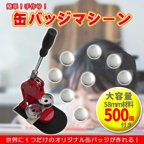 缶バッジマシーン 58mm 缶バッジメーカー 缶バッジ バッジ500個付き 缶バッチ マシン 機械 作成 オリジナル 業務用 ハンドクラフト 販促