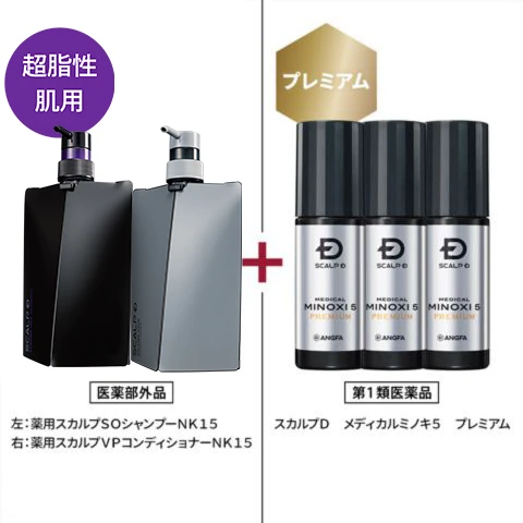 第1類医薬品 スカルプD メディカル ミノキ 5プレミアム×3本 + スカルプD シャンプー + ボリュームパックコンディショナー ストロングオイリーセット 超脂性肌用