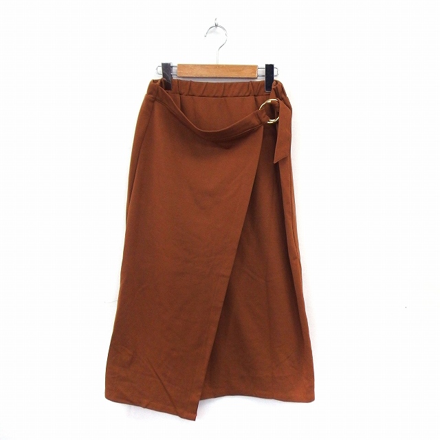 【中古】グローブ grove スカート ミモレ フラップスカート ウエストゴム シンプル M ブラウン /ST11 レディース