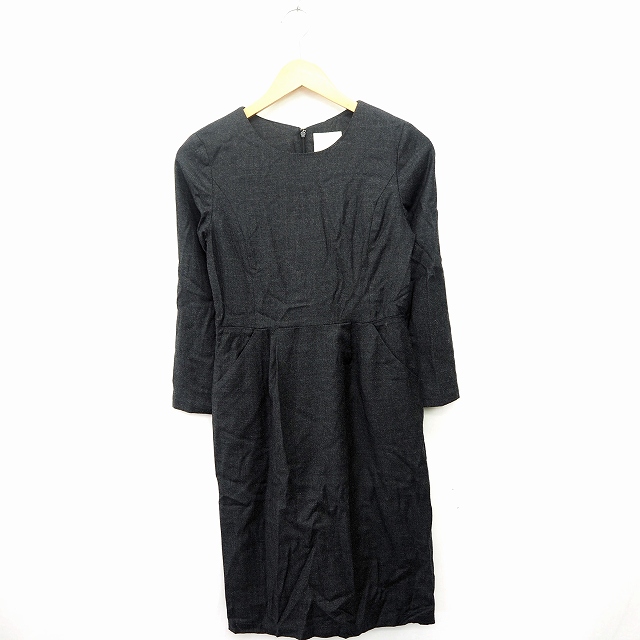 【中古】フリークスストア FREAKS STORE ワンピース 無地 プルオーバー 丸首 膝丈 長袖 ウール 毛 F ダークグレー