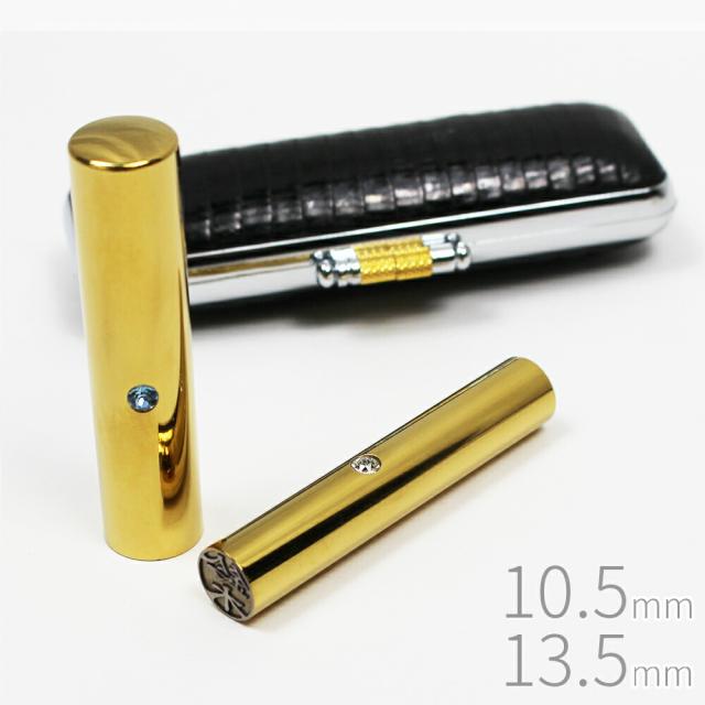 印鑑 はんこ チタン ゴールド 女性用 2本セット トカゲ革ケース付き 実印 銀行印 認印 10.5mm 13.5mm ラインストーン