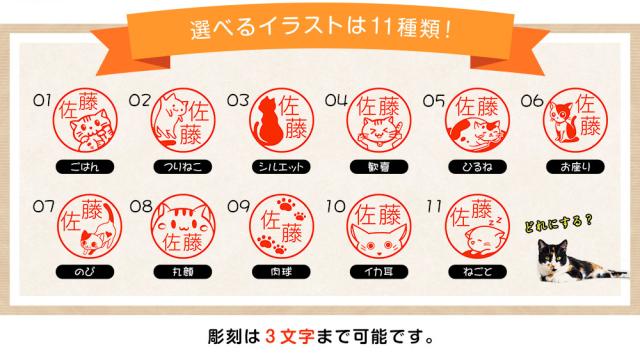 可愛い猫ちゃんの判子ができました。選べるイラスト11種類!