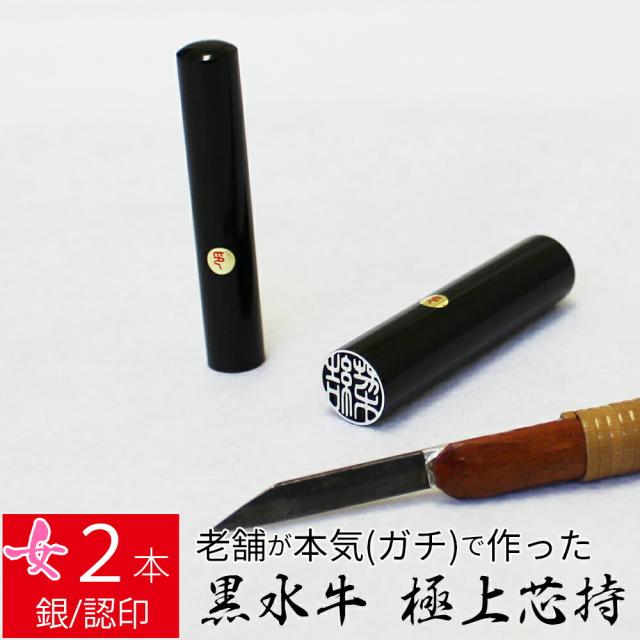 印鑑 はんこ 銀行印 黒水牛 2本セット ケース無し 印面シルバー 実印 認印 個人印 ハンコ 仕事 職場 10.5mm 13.5mm 10年保証