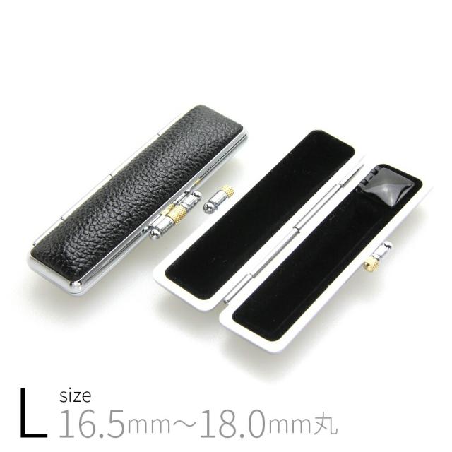 印鑑ケース 牛モミ革 牛革 内張り ブラックベロア ハンコケース 判子 収納 認印 銀行印 寸銅用 Lサイズ 黒 シルバー枠 朱肉