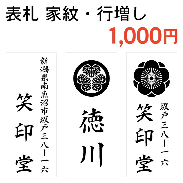 各種木製表札をご購入の際に、家紋入れ・行増し・住所増しをご希望のお客様は一緒にご購入下さい。