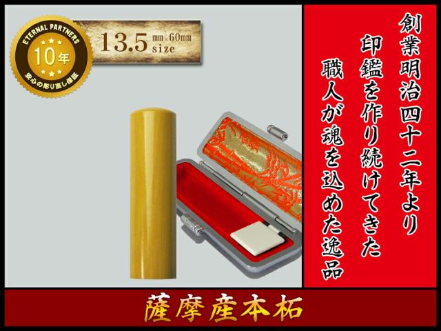 印鑑 はんこ 銀行印 薩摩産本柘 ケースあり 実印 認印 個人印 ハンコ 仕事 職場 13.5mm丸×60mm 10年保証